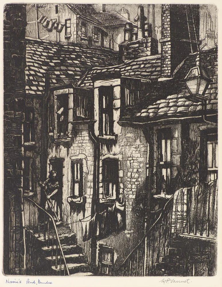 W.P. Vannet, Norrie’s Pend, Dundee, also known as Old Dundee, etching, dimensions unknown, c.1946
