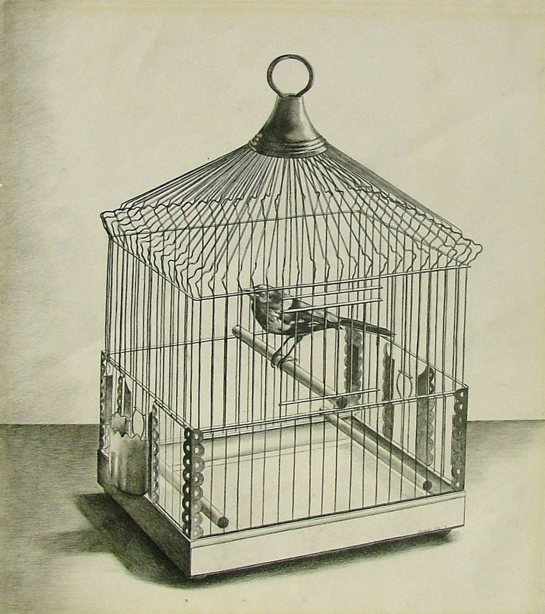 Alexander Allan, Bird In Cage, ink on paper, 38 x 37cm, 1938, University of Dundee Fine Art Collections