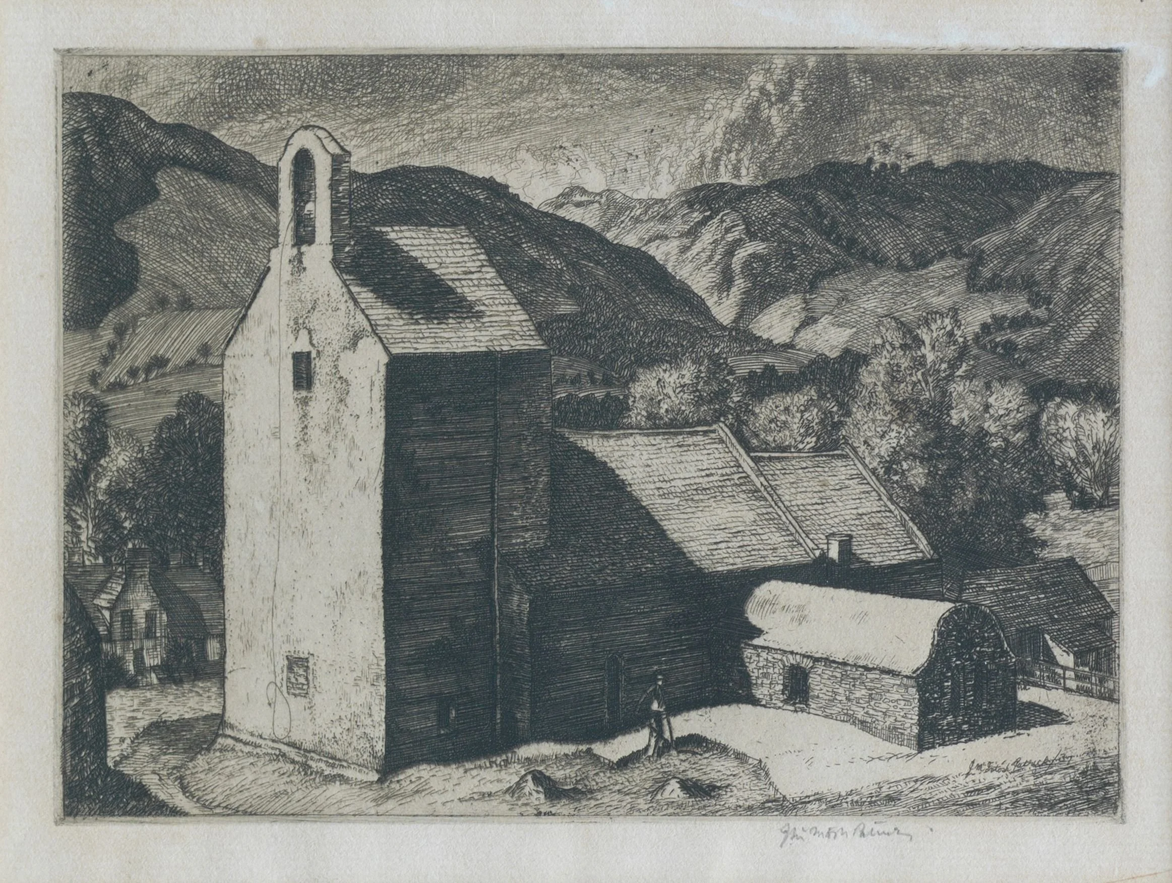 James McIntosh Patrick, Stobo Kirk, etching, 10 x 14.5cm, 1937, private collection