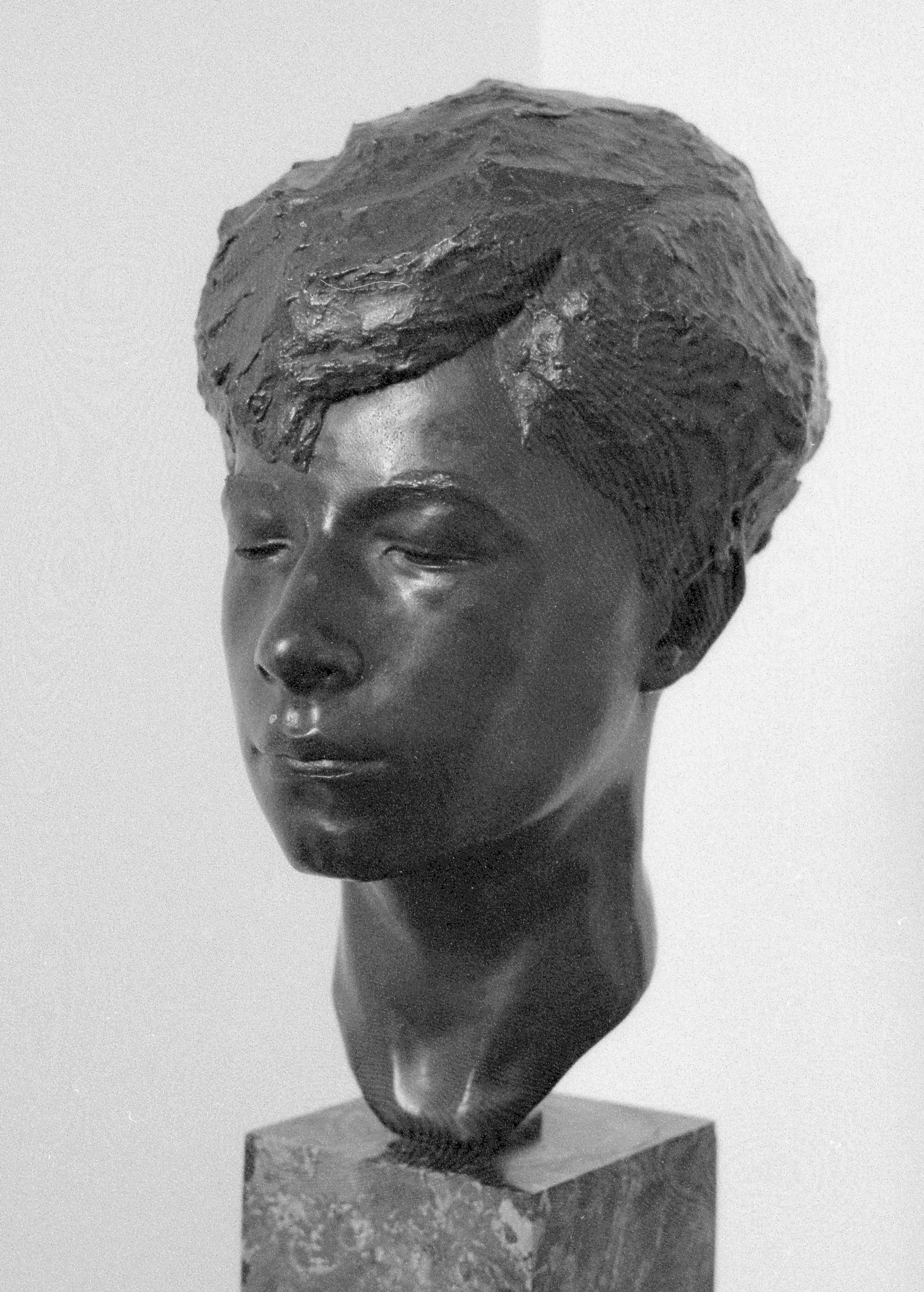 But first he had to learn to draw and sculpt again, partly using his left hand, partly by strapping his tools onto his useless right and using the left for guidance. For this he had to thank Lena Gaudie, his teacher at the resumed continuation classes. The friendly face of Lena Gaudie, a braided band round her head, was Lamb’s first ‘left-handed’ portrait bust and it’s a delightful work, a worthy ‘thank you’ to someone who became a lifelong friend.